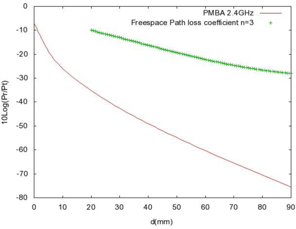 PMBA (tissue medium) and Freespace Pathloss at 2.4 GHz.