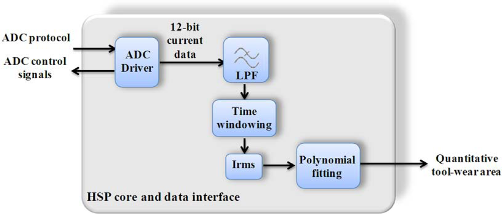 Block diagram for tool wear monitoring utilizing the HSP core.