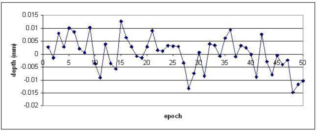 Figure 12 shows the differences between mechanical and photogrammetric measurements. Probably, the better result along the depth is due to the use of highly convergence cameras and an easier tracking phase (feature positions do not significantly change in the image). This aspect needs further investigations. However, these results are good and confirm the potentialities of the developed and implemented strategies.