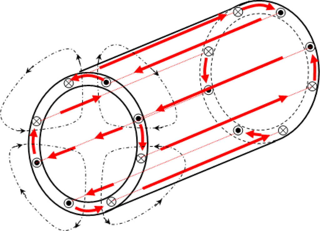 - Romary, R; Roger, D; Brudny, JF. Analytical Computation of an AC Machine External Magnetic Field. Eur Phys J-Appl Phys 2010, 47. [Google Scholar] [CrossRef]