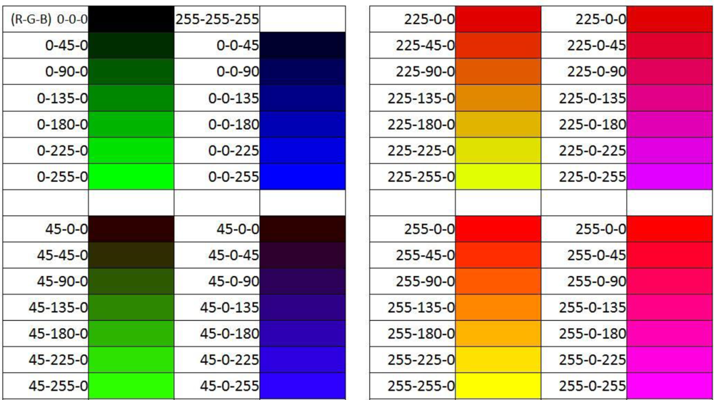 Although RGB content of any surface can be one of the 16 million possible combinations, we used a dataset consisting of only 246 data for training of the networks given in Table 2. Test dataset that is randomly selected and completely different from training dataset consists of 33 data. In order to constitute the dataset, we prepared a color palette whose a small part is given in Figure 5 and printed out them on a glossy paper by using a color laser printer. Then, for each color cell in the palette we obtained corresponding analog voltages by measuring with the probe given in Figure 2.