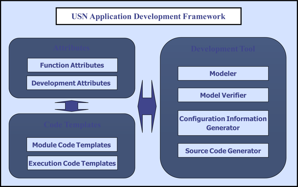 The USN application development framework consists of Attributes, Code Templates and Development Tool. To effectively develop USN applications using the method presented in this paper, a toolkit for application development needs to be established. We call this toolkit “Development Tool.” The Development Tool is established by an expert developer familiar with the target OS for which USN application will be executed.