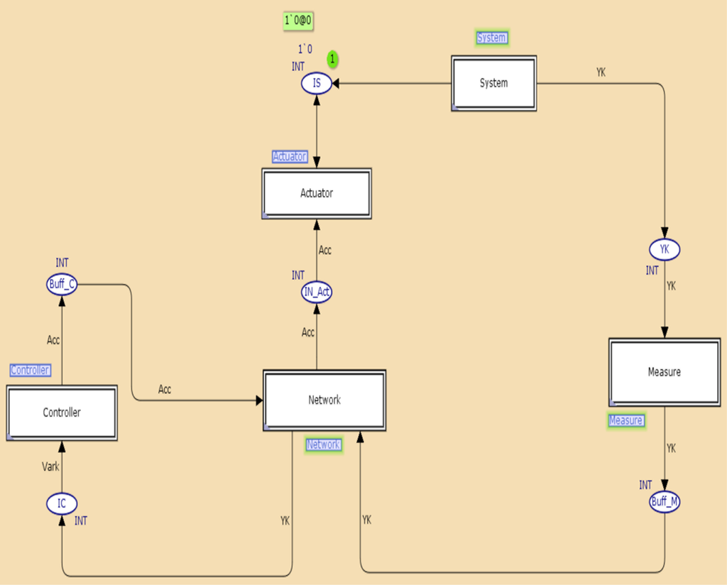 In order to present the procedure proposed a NCS was analyzed. It was possible to represent the system to be controlled and the control algorithm at the same model. Figure 7 presents a hierarchical representation of the NCS.