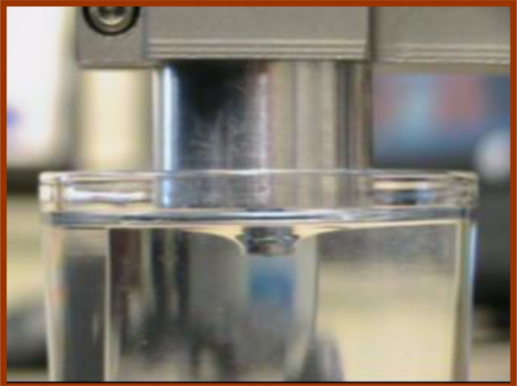 In order to perform the indenter misalignment experiment, a mechanical device, which can hold the mechanical system of TRID and regulate the angle between the indenter and the surface of soft tissues as well, has been developed (Figure 5). This apparatus consists of two parts: the device-holding part and the stand-connector part. A bolt and a screw, which can allow the two parts to rotate around each other, hold the parts together and can also fix the parts with respect to one another at different angles. A small plate with angular measurements is placed around the bolt and is used to align the angle between the two parts. One silicone gel sample with cylindrical shape was selected as tissue phantom to be measured using TRID. The diameter of the silicone gel sample is 45 mm and the height of it is 30 mm. The silicone gel sample is made of RTV 6166 silicone gel, produced by Momentive Inc. RTV silicone gel can cure to form very soft, gel-like elastomers, which have outstanding stress-relief properties, Mechanical shock/vibration dampening properties, and excellent moisture protection properties. The silicone gel samples have similar properties as those of soft tissues with stable performance within a big range of ambient conditions. RTV silicone gel is made from two liquid portion called A and B. Different proportions of A and B results in silicone gels with different modulus. The A/B proportion of the silicone gel sample used in misalignment experiment is 30/70 and the Elastic Modulus of this sample is 17.5 kPa.