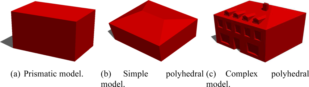 In this study, we are essentially focusing on the approaches producing polyhedral building models (as shown in Figure 1(b)) from a single source of data, namely the high resolution aerial images. These images represent the data type that is widely utilized. Consequently, several image-based modeling approaches are detailed in the following Section 2 (related work).