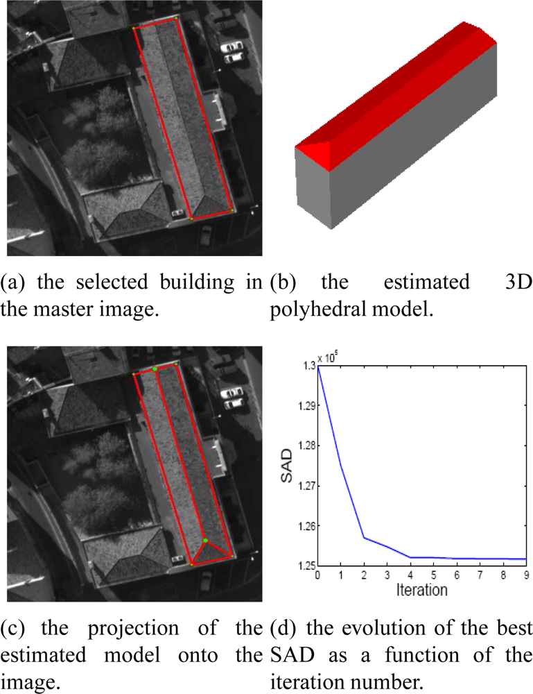 Figure 14. Estimated 3D polyhedral building model and related convergence.