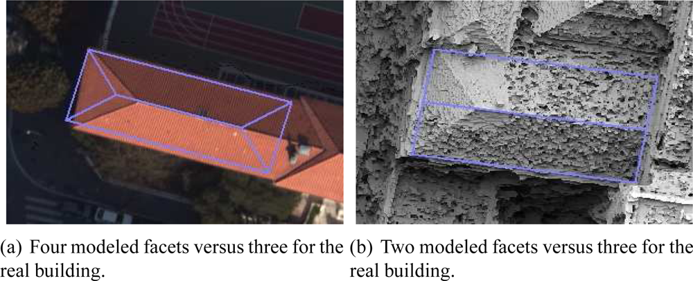 Many interesting building modeling approaches have been addressed in the literature for the reconstruction of 3D polyhedral building models (e.g., [2334]). The intention here is to briefly describe some aerial-based approaches that are discerned by their optimization process, their global methodology or their efficiency.