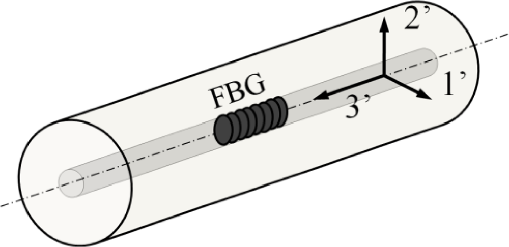 In some cases no coating (recoating) at the location of the FBG is chosen in axial strain sensing applications. As such, the strain acts directly onto the cladding’s surface of the optical fibre sensor. Fan et al. [90] determined experimentally the influence of the additionally induced radial strain in optical fibres when embedding them in a host material. The authors tried to quantify this mismatch by producing two [08,904]s composite specimens in which two FBGs were embedded; one along the 0 degree direction and one along the 90 degree direction. Measurement errors up to 8% were found when using the bare FBGs gauge factor for axial strain. To correct this gauge factor, the authors suggested to use a coefficient which is dependent on the type of load, +3% for tensile loads and −8% for compressive loads. Care should, however, be taken by introducing correction coefficients which are dependent on the type or direction of the load.