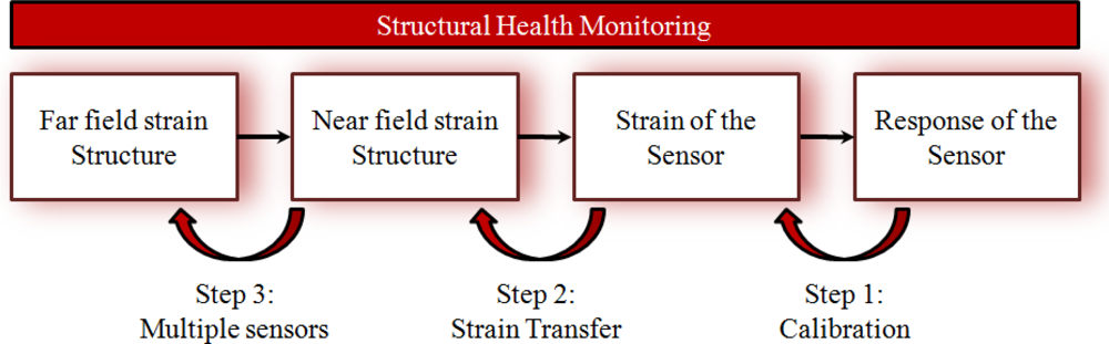 The monitoring scheme of Figure 4 gives an overview of the different steps necessary to relate the output of an embedded FBG to the strain of the structure in which it is embedded. Each step has been addressed in literature, and an overview can be found in this review paper.