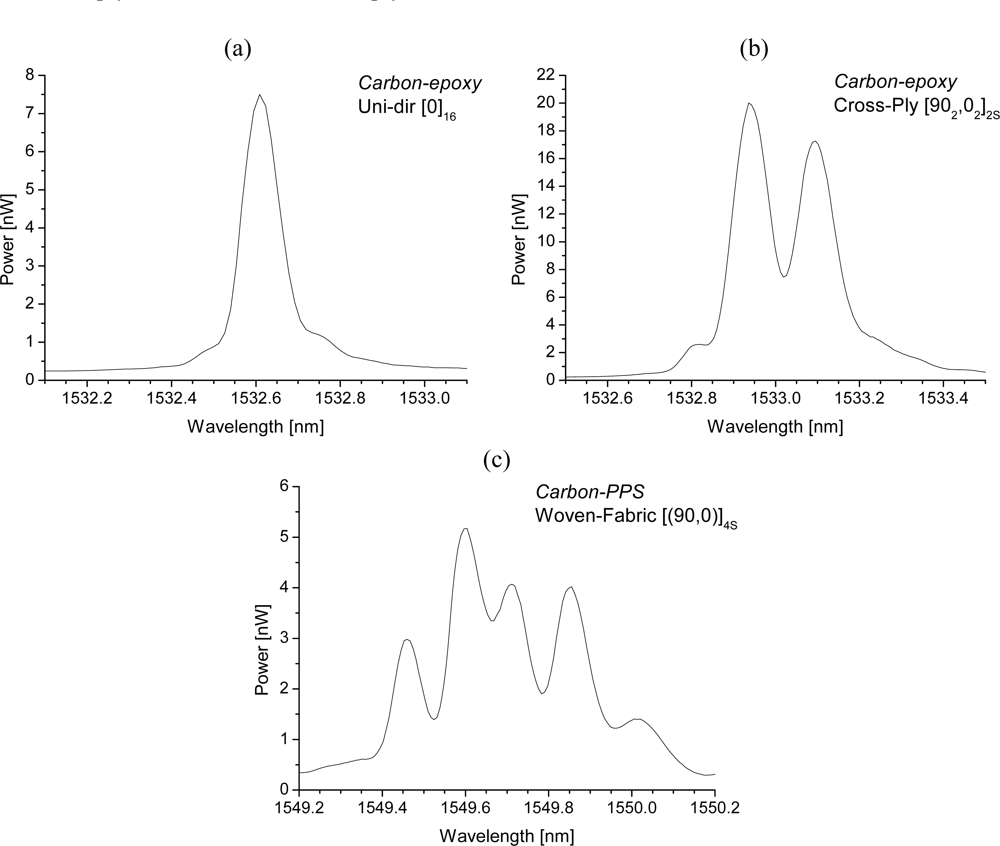 Dependent on the composite morphology, in which the FBG is embedded and the coating of the FBG, the reflected spectrum of the Bragg grating (after curing) can remain uniform, specifically distorted, or highly randomly distorted. Distortion of the FBG spectrum is mainly caused by the existence of residual strains, which build up during the composite manufacturing process. These strains exist in the absence of any external load (mechanical, and thermal).