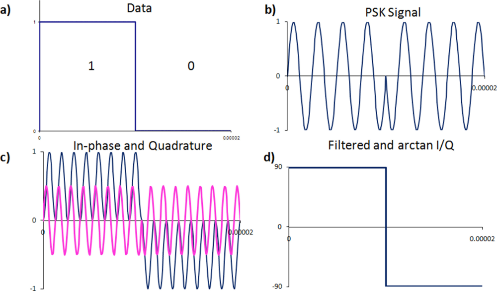 Decoding PSK uses some simple mathematics to retrieve the phase information The PSK signal, Equation (7), is multiplied by a synchronous sine and cosine, giving: