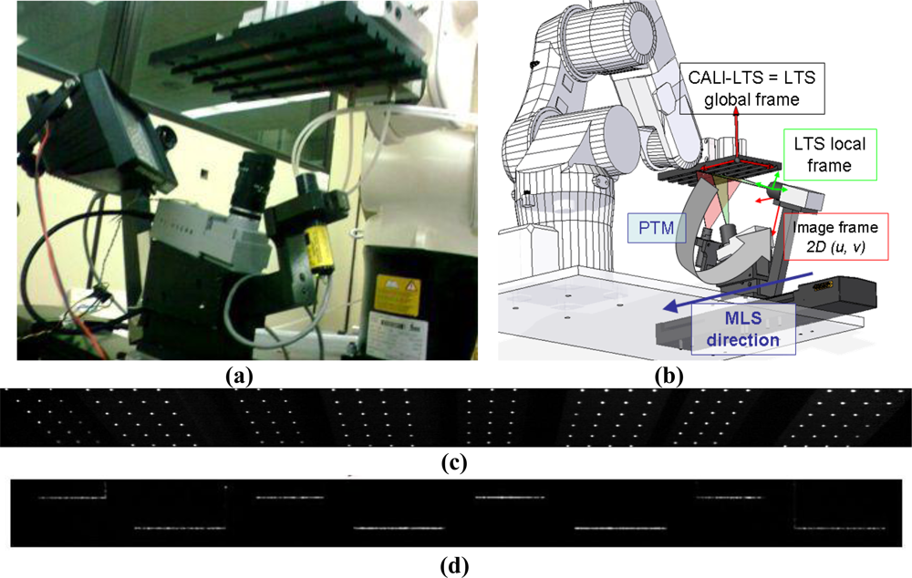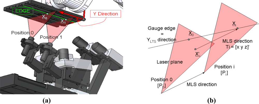 The LTS should be calibrated and the system including the MLS and the LTS must be characterized in order to establish the relationship between the frame of the LTS and the movement direction of the MLS. A high precision gauge object is used to calibrate the LTS and relate it to the MLS.