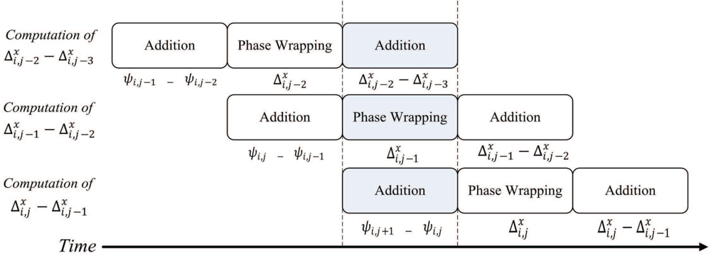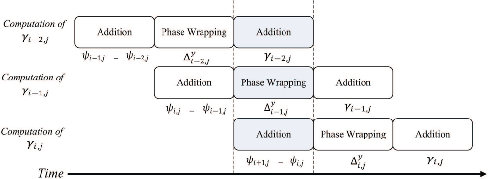 A number of implementations for fast phase unwrapping have been proposed [19–21]. The implementations presented in [20,21] are based on PCG [13,14] with field programmable gate array (FPGA) devices and graphic processing unit (GPU) [22] platforms, respectively. The implementation proposed in [19] is based on Gauss–Seidel techniques [13,15] with GPU platforms. Because both PCG and Gauss–Seidel techniques are iterative algorithms, only moderate acceleration is achieved. Moreover, some of these implementations are based on GPU, which may be difficult to be used for embedded devices due to high hardware cost and large power consumption.