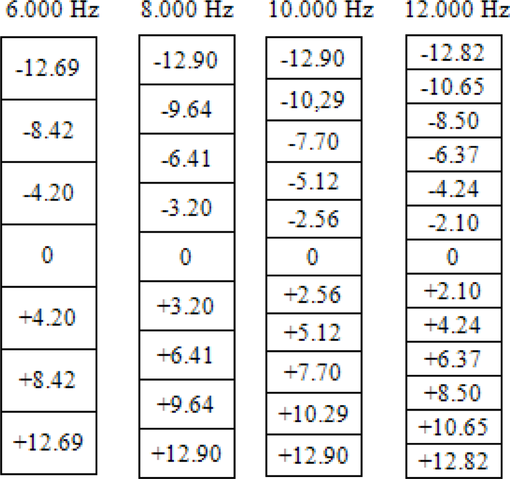 For frequencies below 6 kHz and for frequencies above 12 kHz, the system sensitivity is very low, due to the pass-band response of the tweeter. Therefore a frequency band between 6 kHz and 12 kHz has been selected.