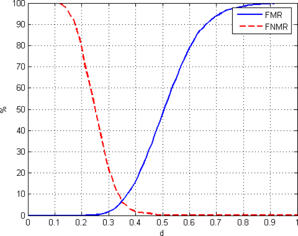 Figure 22 shows the FMR and the FNMR functions versus the normalized distance d.