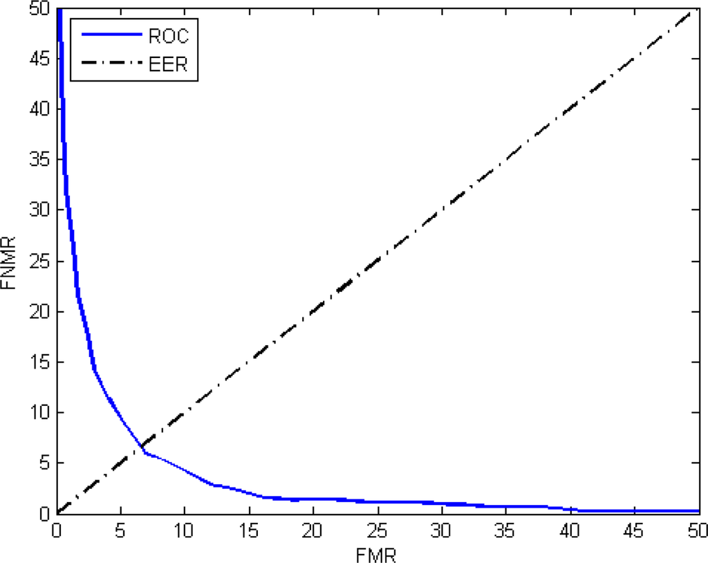 Finally, the ROC curve, a visual characterization of the trade-off between the FNMR and the FMR, is shown in Figure 24.