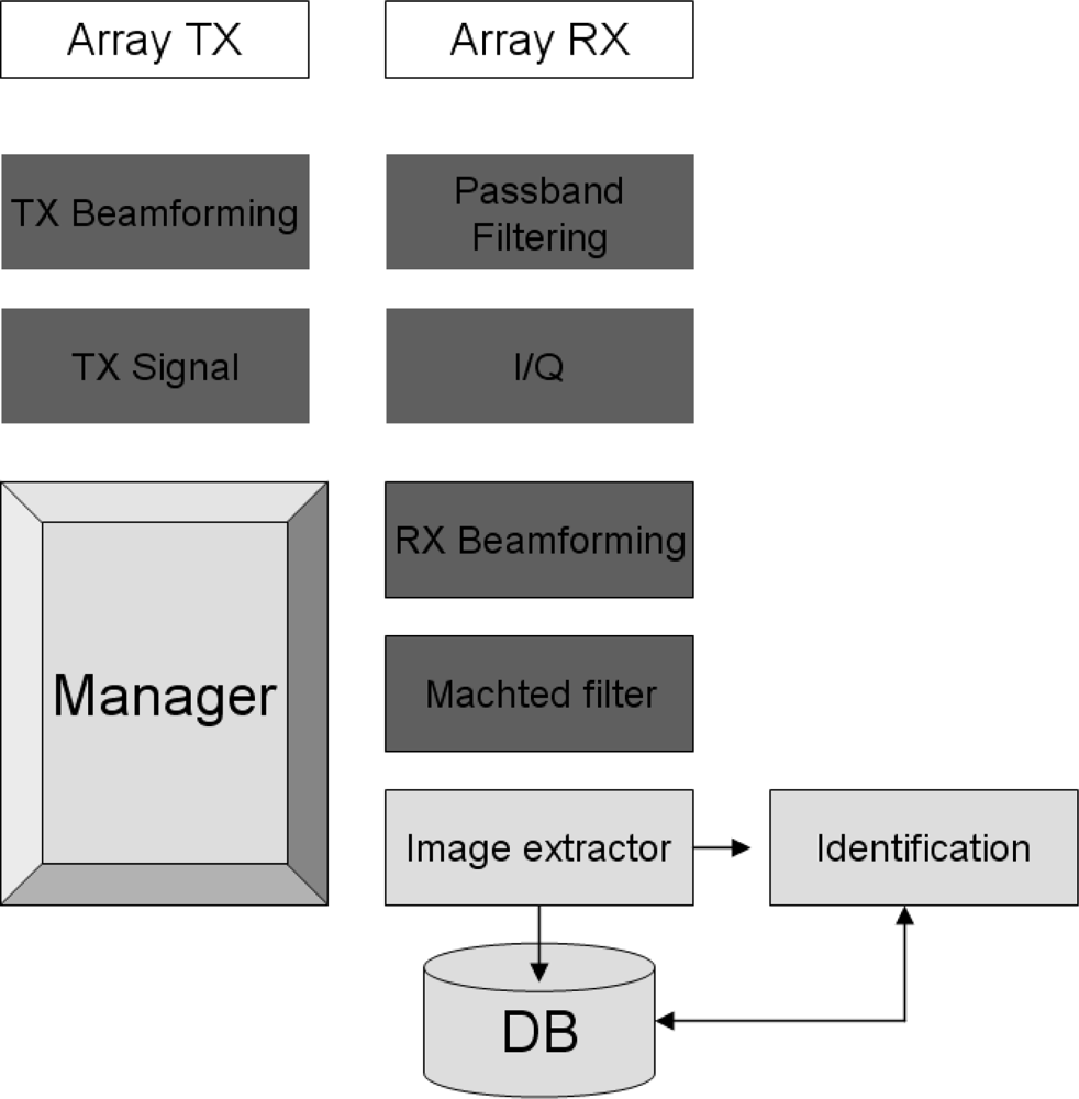 The manager controls all subsystems, performing three main tasks: (i) person scanning and detection, (ii) acoustic images acquisition and (iii) person identification based on a database of acoustic images.