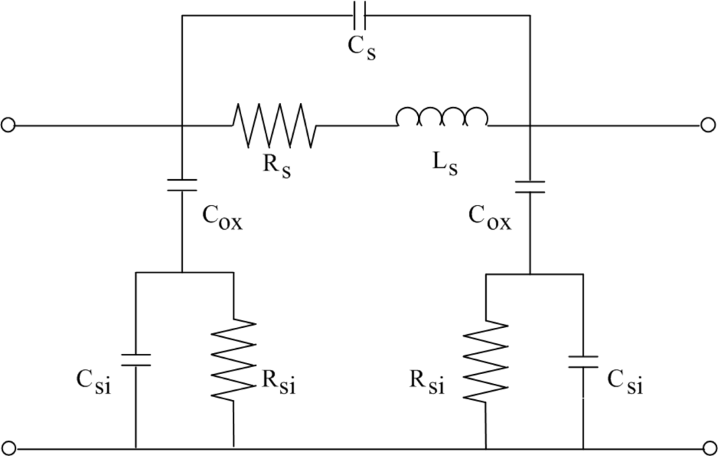 The Q-factor of the inductor, which measures the capability of the inductors to save energy, is an important parameter. As shown in Figure 2, the Q-factor of the spiral inductor according to the π model is given by [15]: