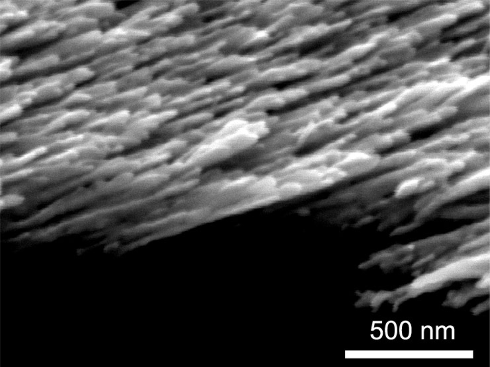 The sensitivity of SERS substrates plays an important part in SERS measurements, and nanostructured noble metals were found to be high sensitive. In our study, we chose Ag nanorods as SERS substrates. They were prepared by electron beam deposition via the glancing angle deposition method. Details of the deposition of the Ag nanorods are described elsewhere [23]. The morphology of the Ag nanorods substrates is shown in Figure 1. The Ag nanorods are 30∼40 nm in diameter, and 600∼800 nm in length. The Ag nanorods SERS substrates were put into the solution samples A, B, C and D, respectively. After 30 minutes, the Ag nanorod substrates were taken out of the solutions and acetone on the substrates was blown away using a nitrogen flow. The Raman spectra of these substrates dipped into solution samples were measured at room temperature by a Renishaw Raman 100 spectrometer using a 633 nm He-Ne laser as the excitation source.