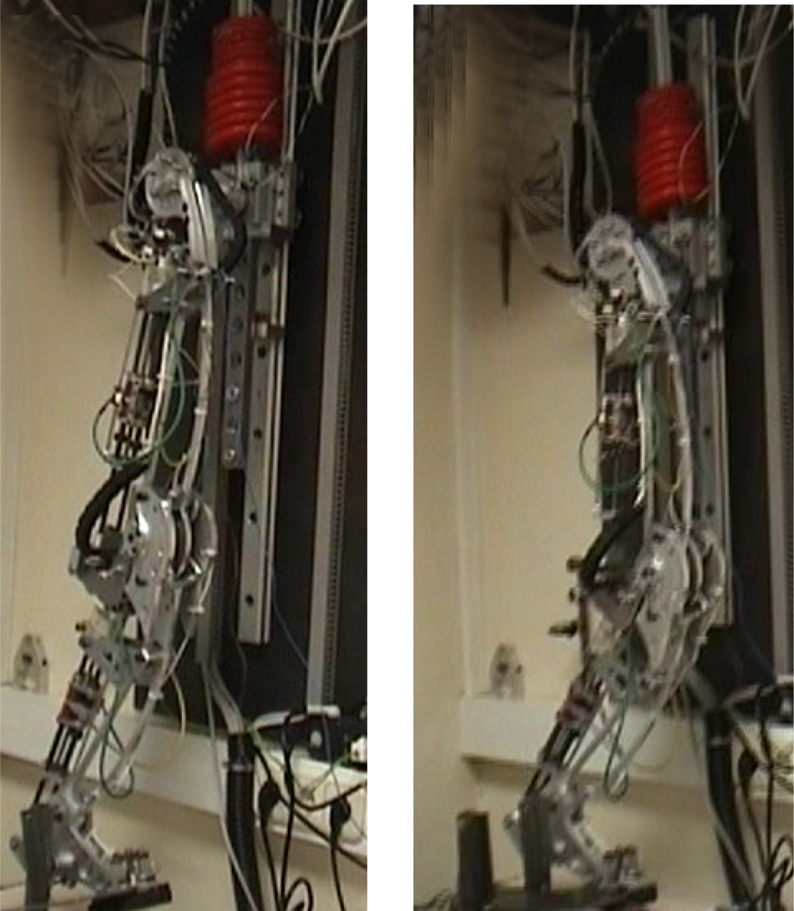 Considering the mammalian muscle as a reference, direct measurements of muscle function have yielded insight into the versatile way muscles operate. It has been discovered that muscles act as motors, brakes, springs, dampers and struts [24]. The multifunctionality of natural muscle distinguishes it from any human-made actuator and it may hold the key to the success of legged locomotion. In many biological tissues it is hard to distinguish between material and structure. The use of viscoelastic materials can give the robot the spring-mass energy-cycling capacities of legged-animal locomotion, which also reduces the computational complexity of the control. Viscoelastic materials greatly simplify the mechanics of the robot, serving simultaneously as shock absorbers, springs and complete joints.