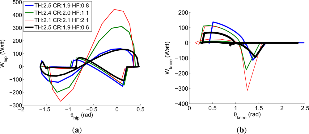 Figure 5 shows screen-shots of the simulated locomotion cycle. Joint torque, speed and power requirements obtained from the dynamic simulation are shown in Figure 6.