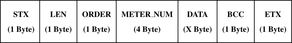 The smart meters communicate through an RS-485 bus. The general structure of the frames is defined as a variable structure presented in Figure 3 and described as follows: