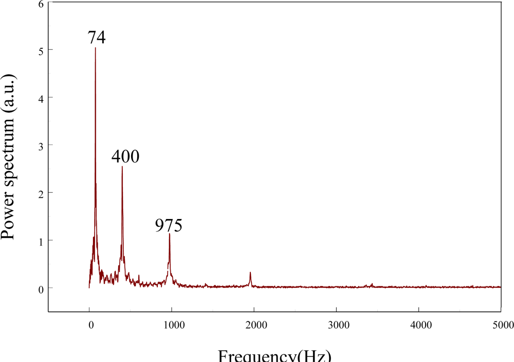 The frequency spectrum of the smart cantilever beam can be constructed from taking the fast Fourier transform of the transient strain responses obtained by the FBG strain sensor and the results are shown in Figure 9. Next, we excite the piezoelectric actuator with random inputs to perform system identification by the stochastic spectral estimation. The random signal input is generated by dSPACE DS1104 system with the sampling frequency set to 50 kHz. From the input and output data recorded by dSPACE DS1104 system, the frequency response function (FRF) of the system is determined from the relation [21]: