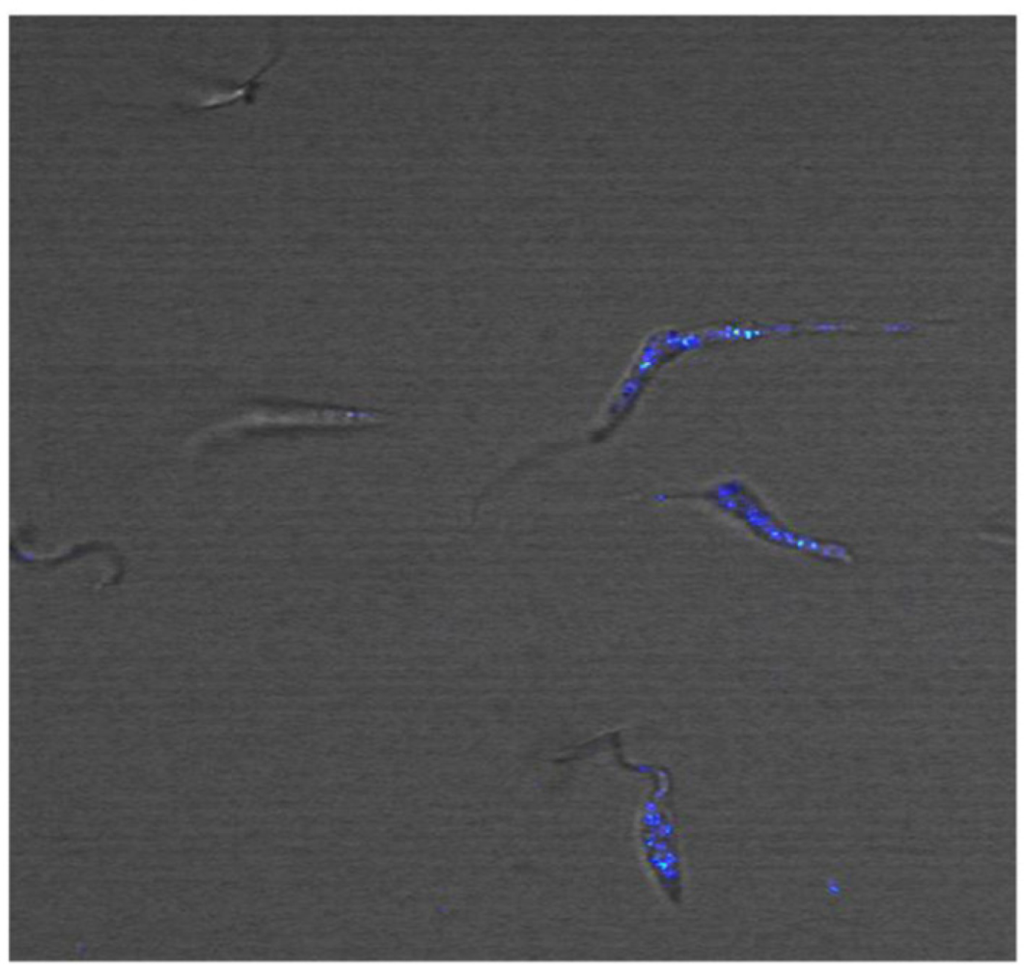 Our group investigated the mechanisms of toxicity of CdTe QDs in Trypanosoma cruzi, the protozoan that causes Chagas’ disease. We found that nanoparticles at concentrations below 20 μM did not affect the integrity, motility and cell division of parasites []. Cell cycle assays demonstrated a dose-dependent increase in DNA fragmentation induced by the incubation with 2–200 μM CdTe QDs, also reduction in the percentage of DNA duplicated parasites.