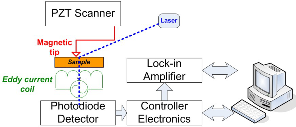 - Nalladega, V. Design and Development of Scanning Eddy Current Force Microscopy for Characterization of Electrical, Magnetic and Ferroelectric Properties with Nanometer Resolution. Ph.D. Thesis,. University of Dayton, Dayton, OH, USA, 2009. [Google Scholar]