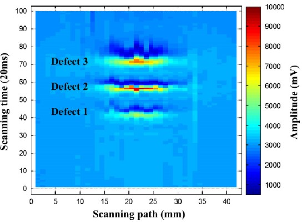 In 2010, the authors and their colleagues Yang et al. developed a novel PEC–GMR imaging technique by integrating the giant magnetoresistive field sensor for the detection and characterization of buried cracks in multiple layered structures [52]. The PEC–GMR system is illustrated in Figure 19 and typical imaging results shown in Figure 20.