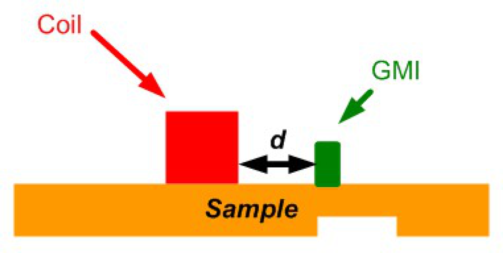 Vachera et al. developed a high sensitivity imaging sensor based on GMI effect that combines good sensitivity performances at low frequencies and small size of sensors in 2007 [73]. A simple configuration of GMI imaging is shown in Figure 28.