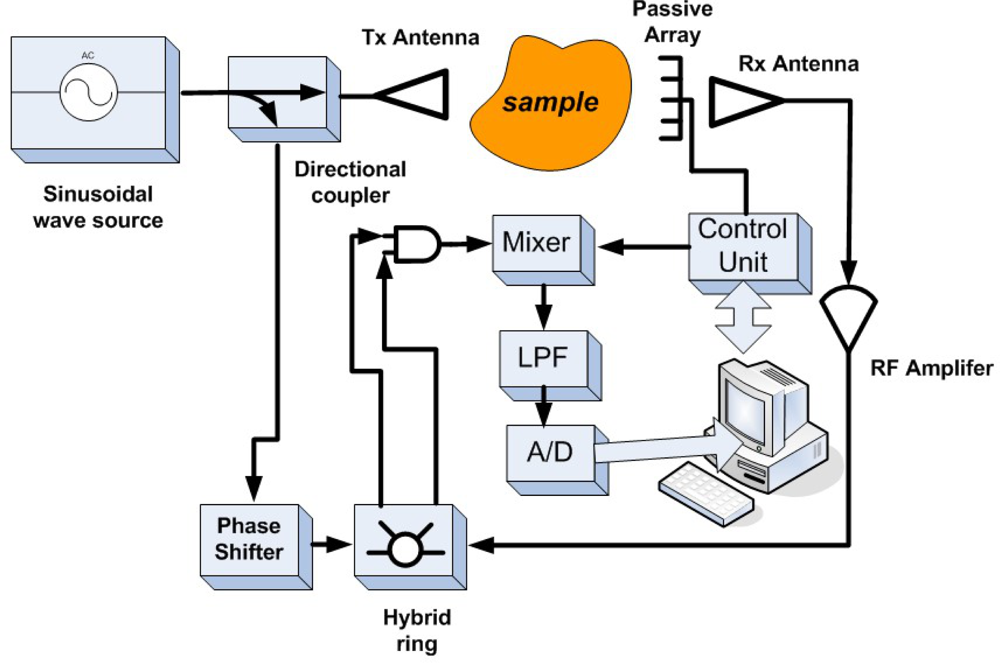 In 2004, Pastorino summarized the development of efficient inverse scattering based procedures for electromagnetic imaging at microwave frequencies, especially for 2D tomographic imaging approach. He also introduced the modulated scattering technique, which is a promising technique strongly related to electromagnetic scattering concepts [78]. The modulated scattering system schematic is shown in Figure 31.