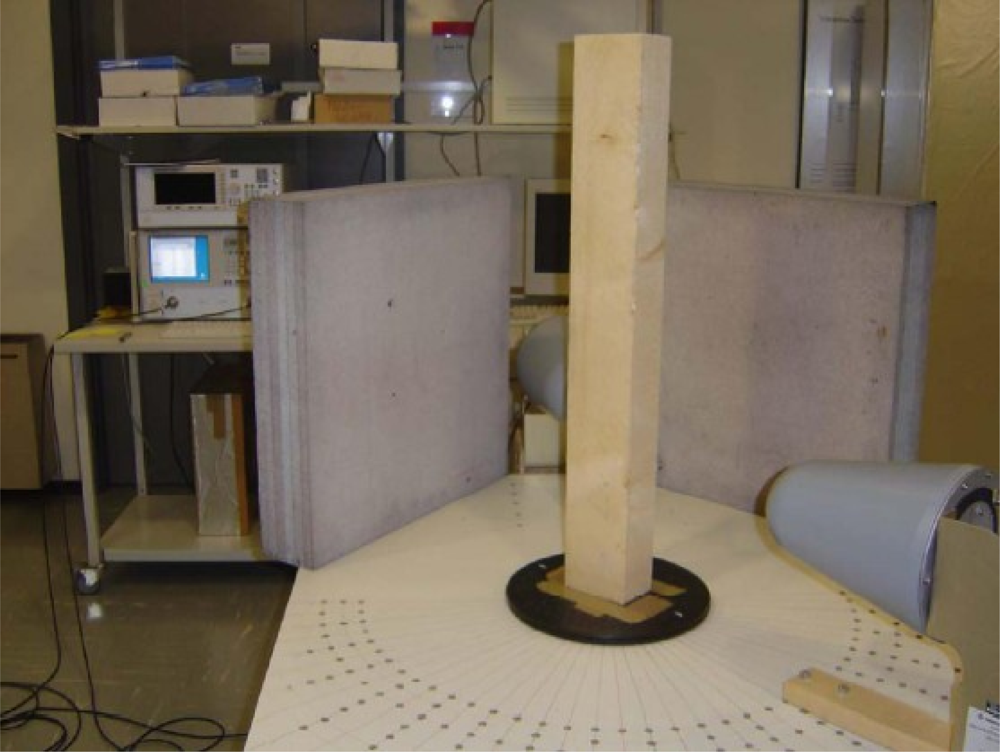 Similar types of efforts were carried out by Benedetti et al., who developed an innovative inversion procedure based on the use of GA and on the Sherman–Morrison–Woodbury (SMW) matrix inversion method [88,89] with the testing structure shown in Figure 34. Also, Massa et al. from the same group presented the improved tomographic microwave imaging approach based on the use of the SMW updating formula for electric field computation with applications in civil structures. Donelli and Massa et al. in 2005 developed another innovative stochastic algorithm called the particle swarm optimizer (PSO) for the solution of microwave inverse scattering problem [90]. In 2011, this group tried to solve the 2D inverse scattering problem by probing the unknown scenarios with TE and TM waves with multi-zooming approach [91]. Besides those literatures, there is another excellent technical article published in 2006 by Langenberg et al., who tried to unify the theory of electromagnetic, acoustic and elastic wave fields for imaging purposes with examples of bridge NDE [92].