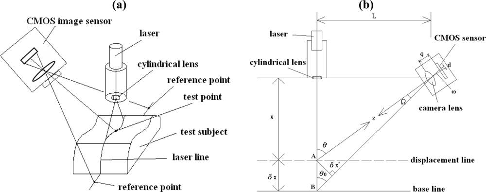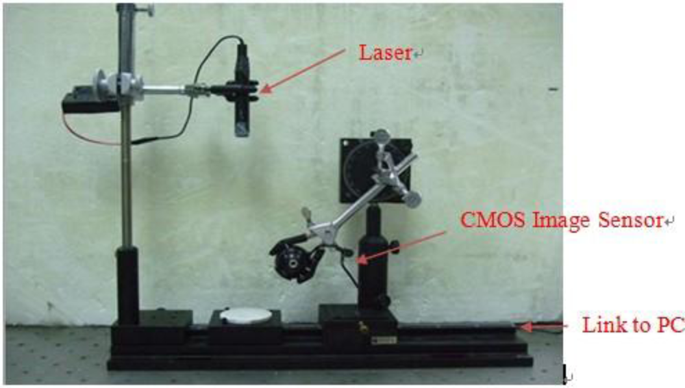 The system setup is shown in Figure 2. In our experiments we use a CMOS image sensor (HV7131D, manufactured by Hynix Semiconductor Incorporated) to detect the laser light line which is coming from a 1.3 mW laser diode (Model no. QL63d5sA, MORETEC, Inc.) [13].