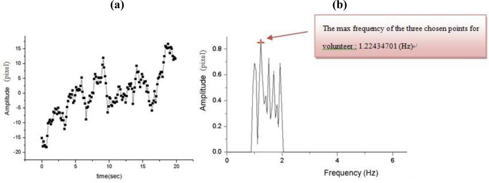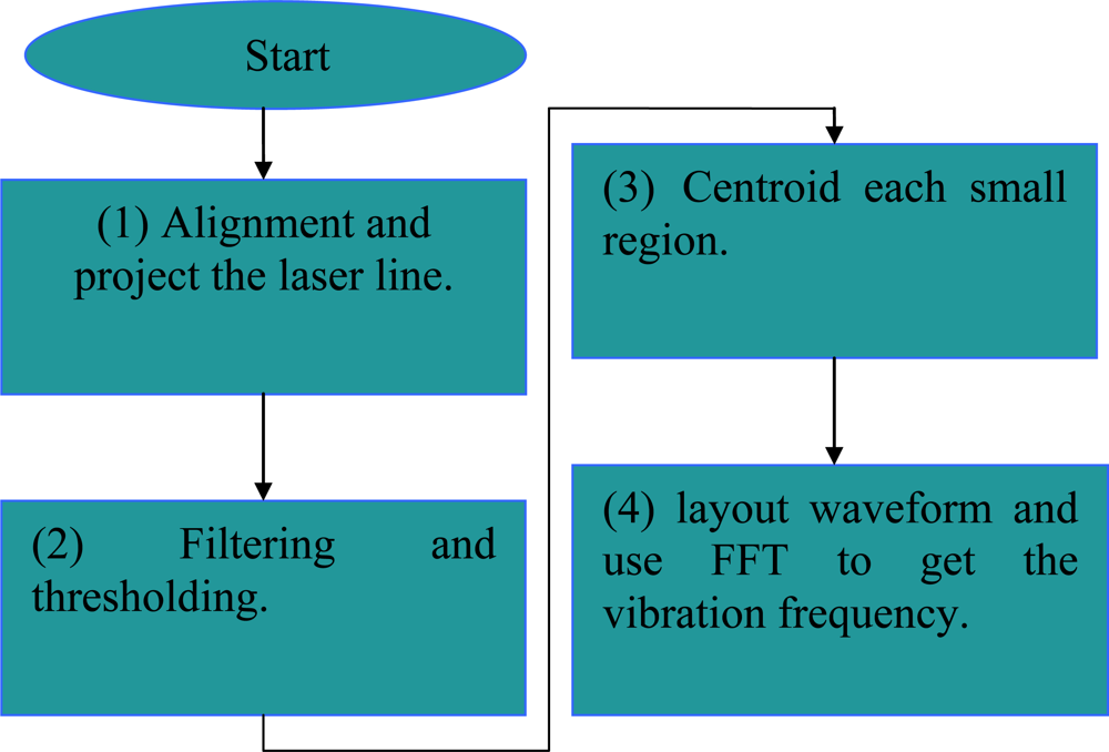 The resolution of the system can be increased by introducing a sub-pixel processing technique [11,12]. It should also be noted that about 4–7% power reflection occurs due to differences in the refractive indices of the skin layers for normal incidence of laser light [10]. We use the MATLAB and Origin software packages to develop the signal processing program for calculating the vibration frequency of the dorsum manus as indicated by the laser light line. The signal processing is as follows: