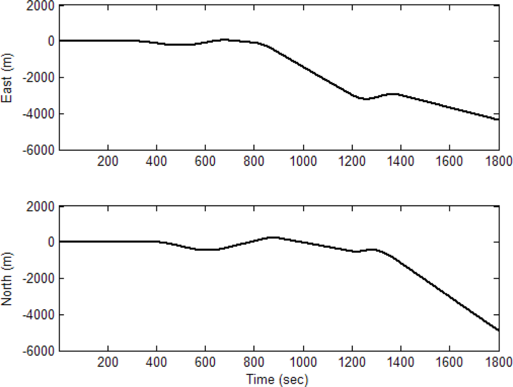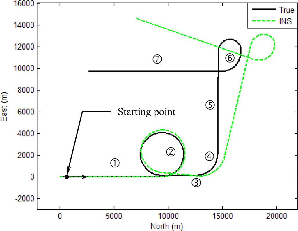 A navigation filter is commonly designed by use of an extended Kalman filter (EKF) [1–3] to estimate the vehicle state variables and suppress the navigation measurement noise. Although it has been shown to be a minimum mean square error estimator, the fact that EKF highly depends on a predefined dynamics model forms a major drawback. For achieving good filtering results, the designers are required to have the complete a priori knowledge on both the dynamic process and measurement models, in addition to the assumption that both the process and measurement are corrupted by zero-mean Gaussian white sequences.