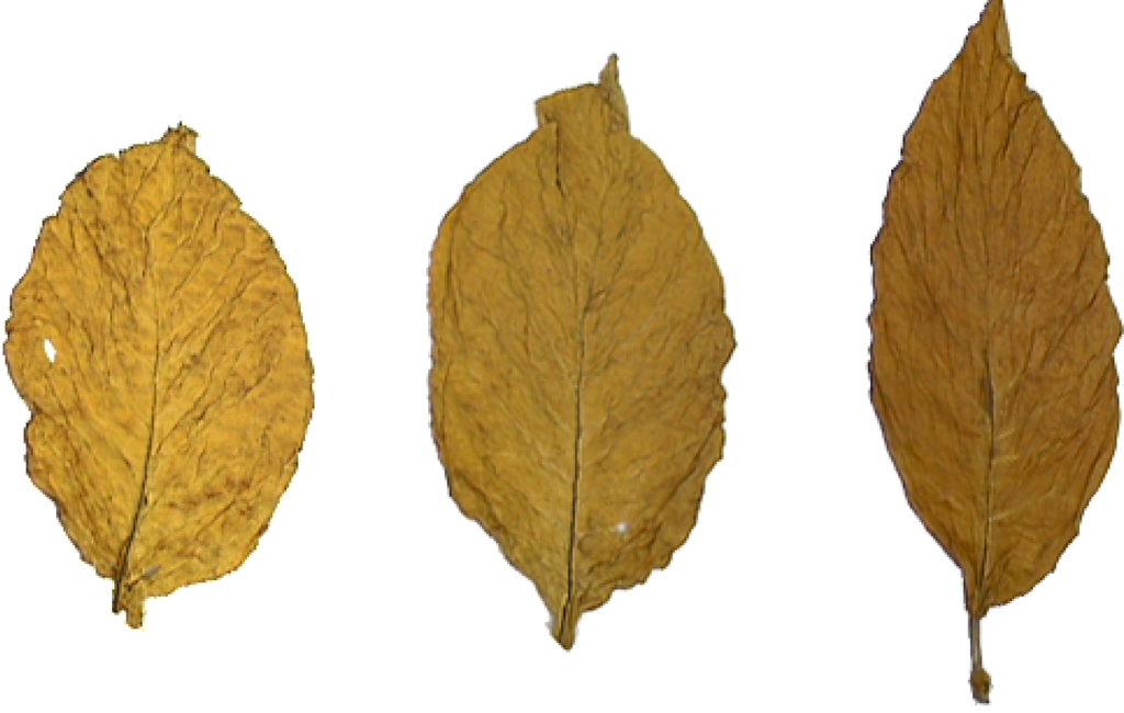 The detailed grading standards of flue-cured tobacco leaves may vary from one country or even one tobacco strain to another, but the general method and the concerned external features of tobacco leaves are quite similar [9,10].