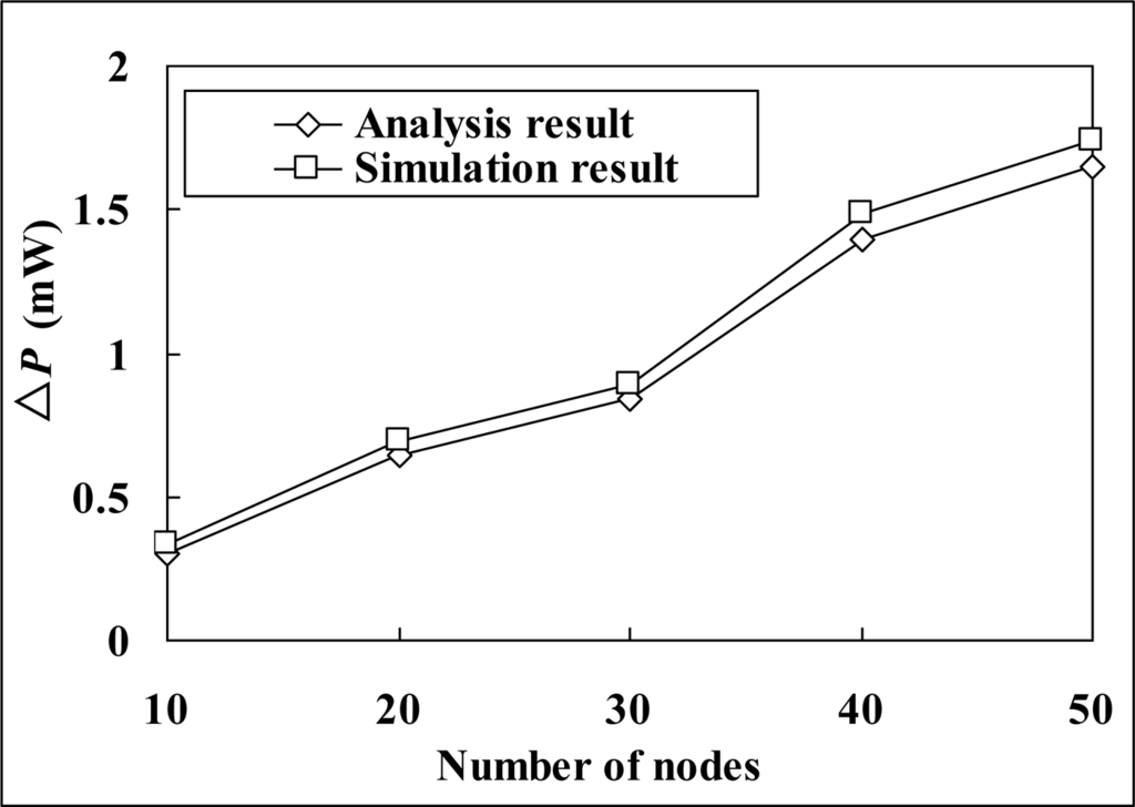 Obviously, ΔP is always a positive number, i.e., W-MAC is more energy efficient than LL-MAC. We can also see that ΔP will grow when there is more significant difference between the maximum and average data generation rate of nodes, which shows the supreme energy efficiency of the scheduling of W-MAC in heterogeneous convergecast scenario. At the same time, ΔP will also be larger when the number of sensor nodes in the network increases, i.e., W-MAC can reserve more energy in large scale network.