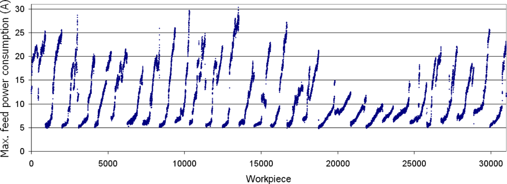 Feed power consumption maximum value for the workpiece, u7: searches for very low values that occur when tool inserts are either already broken and no longer cut or are completely new.