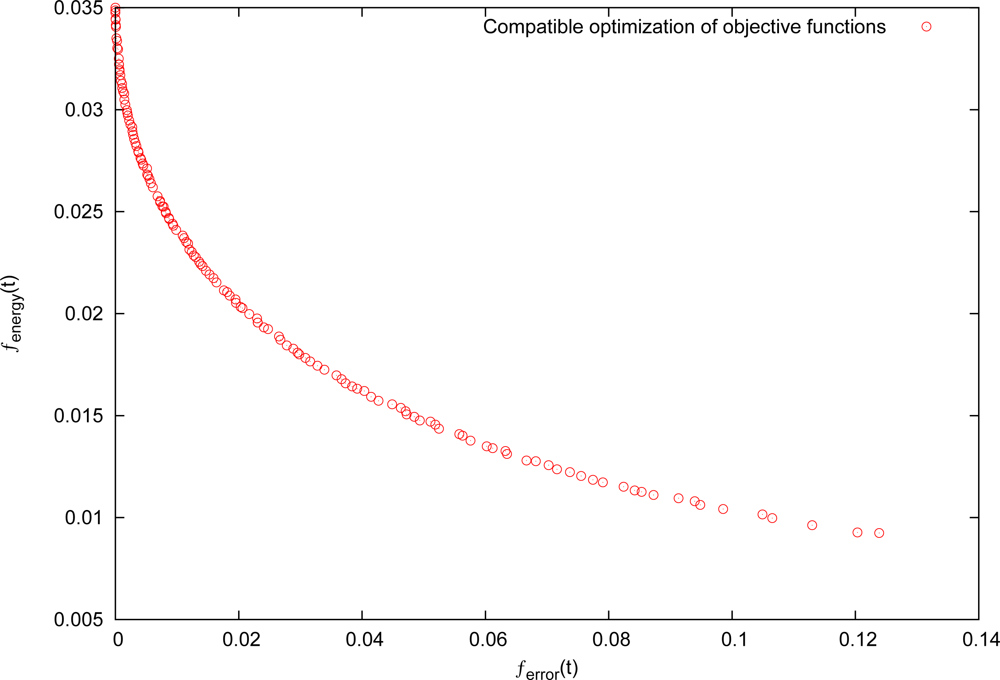 Figure 7 shows the result obtained by the use of the compatible optimization level. It is clearly seen that the energy consumption is always in conflict with the control precisions. To achieve different convergence rate, we adopt various adjustment methods for control deviation tolerance Δx at each iterative, and discuss the following various cases.