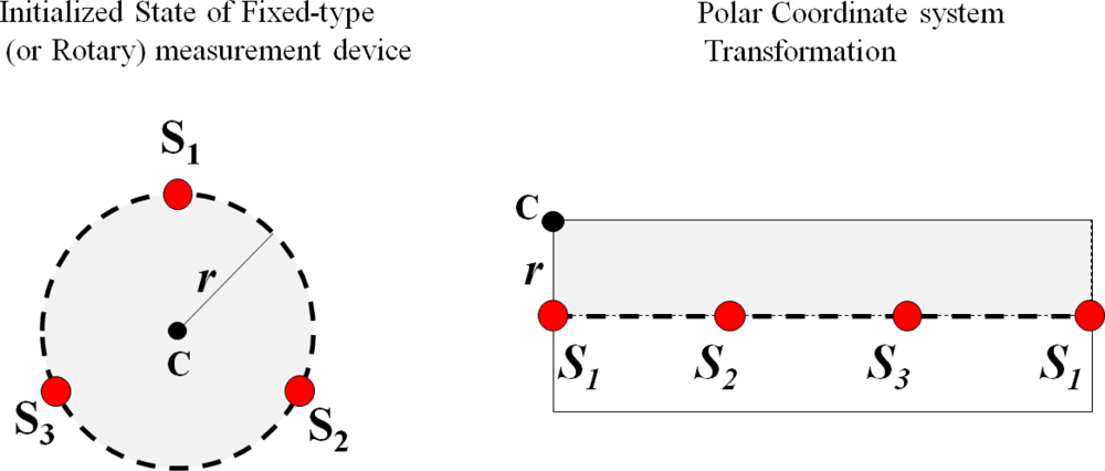 Table 5 shows the data samples that are measured by the rotary-type measurement device and then converted into the measured distances (MDs) at the DADS. The rotary-type plant growth measurement device can get 130 data points at a time by setting the sensor’s rotation measurement deviation to 2.5 degrees.