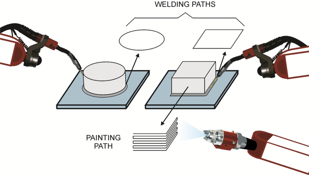In the second experiment, three paths are monitored through the smart sensor network. The online estimation of the angular position and the forward kinematics of each joint are performed on a 6-DOF PUMA robot. The monitored paths are selected considering the motion characteristics of real automatic robotic operations. Figure 6 shows the used paths and their relation with real operations in robots. Circle and square paths are selected considering welding joint operations, where lines and complex paths could be necessary. A zigzag path is designed considering a repetitive robotic operation such as painting. All the chosen paths have different complexity degree for being executed, due to the robot kinematics; the circle path has a low complexity degree, the square and zigzag path have higher complexity degree. Those paths are used to evaluate the robot controller performance.