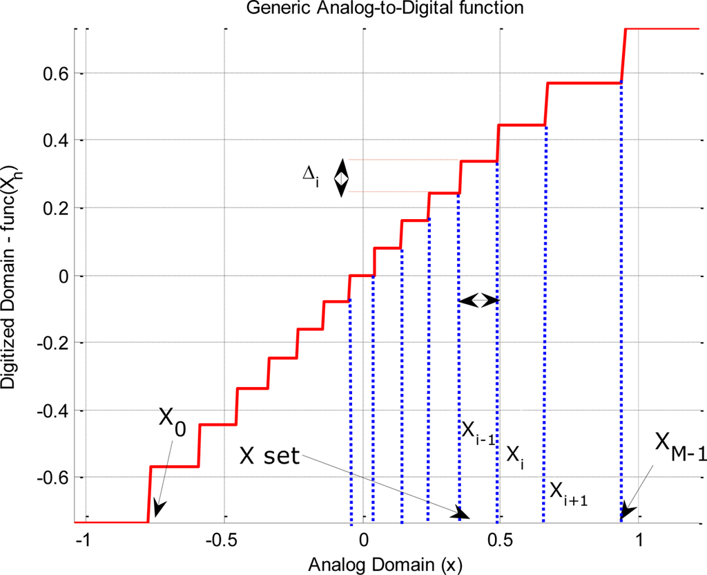 is the quantization step value between the (Xm−1, Xm) interval. Note that, in the most general case the distance between two consecutive steps does not have to be constant either ( ), and