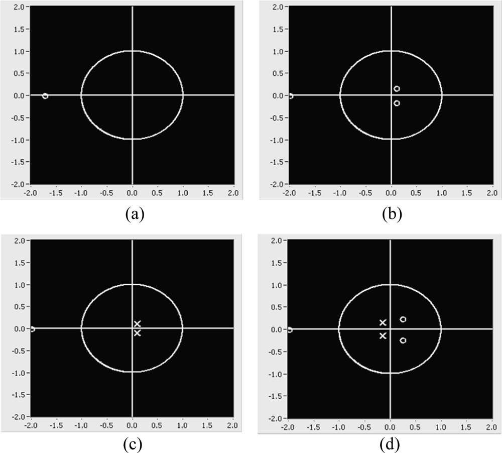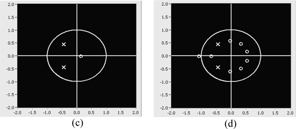 | (d) (i) Kepstrum coefficients (two poles) and (ii) Adaptive filter weights (three zeroes) | |||||||