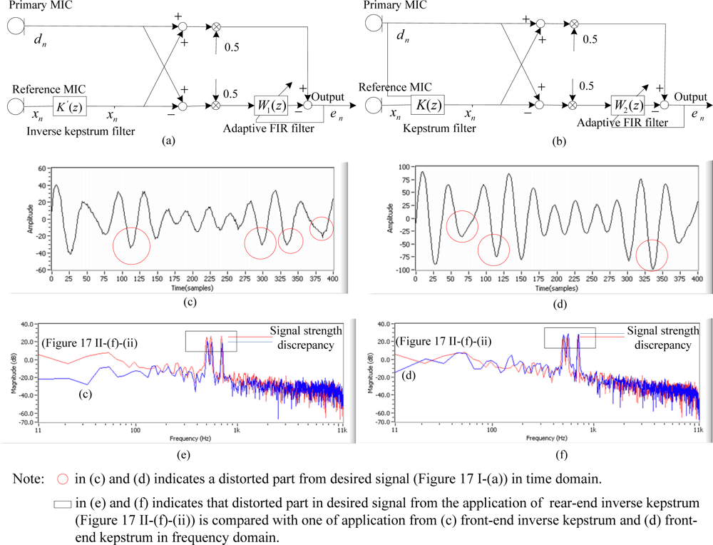 For real-time processing in a realistic reverberant environment, the kepstrum method and inverse kepstrum method have been applied to ANC and beamforming structures, hence its performance on modified application [4,6–8] to desired signal and adaptive filter has been investigated in detail in this paper.