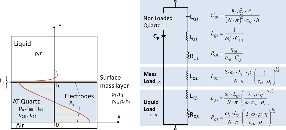 - Granstaff, VE; Martin, SJ. Characterization of a thickness-shear mode quartz resonator with multiple nonpiezoelectric layers. J. Appl. Phys 1994, 75, 1319–1329. [Google Scholar]