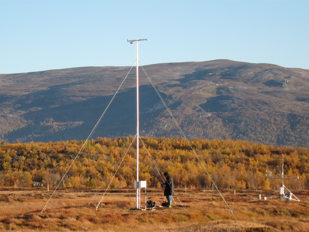 The network consists of five sites, located in Sweden and Finland, which range latitudes from 56°N through 69°N (Figure 1). Their location was determined by the access to existing flux towers. Optical signals were sampled continuously throughout 2010, except for some short periods of power failure. Table 1 provides details about the measurement sites. At two sites (the coniferous forests) we utilize existing high flux towers for our sensors, and at the remaining sites we have erected separate masts for the measurements (for an example, see Figure 2).