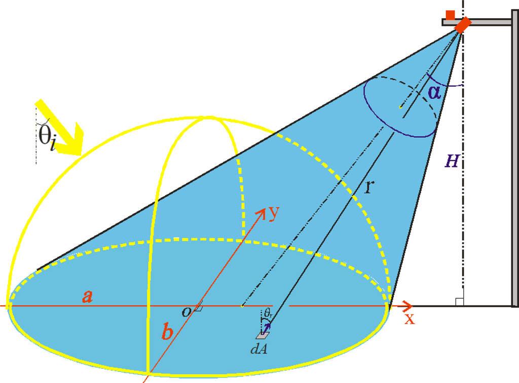 A light flux (power) radiated from a small area dA to another small area dA′ is given by Lambert’s Cosine Law [55]: