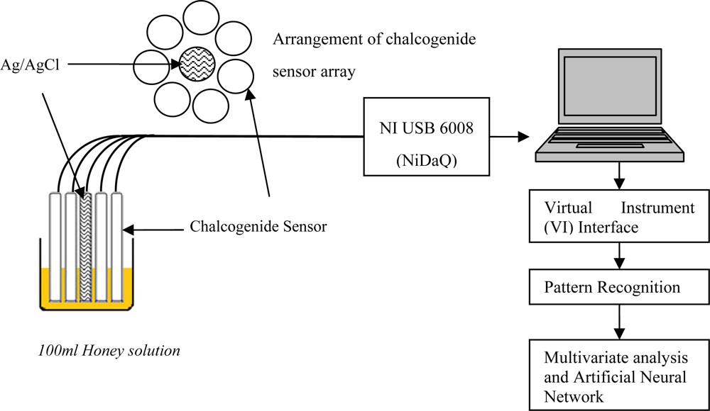 Quality assessment of honey is often related to its flavour (taste and aroma), besides its phytochemical contents and nutritional values. Unfortunately, laboratory assessments such as Fourier Transform Infrared Spectroscopy (FTIR), Liquid Chromatography-Mass Spectrometry (LC-MS) and Gas Chromatography-Mass Spectroscopy (GC-MS) are limited to chemical separation [11–17]. Furthermore, it has been reported that analytical instruments were often unable to correlate with the human perception [18–20]. This paper presents two bio-mimicking sensing modalities, namely the electronic nose (e-nose) and electronic tongue (e-tongue). These bio-mimicking sensors are combined by an efficient data fusion algorithm to perform classification of honeys of different floral origin and adulteration. The combination of these electronic sensory inputs allows the possibility of associating the chemical contents with the senses of taste and smell [18].
