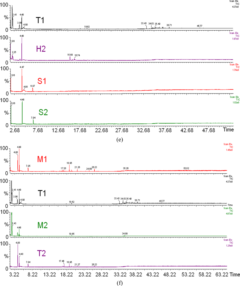 However, when honey samples were mixed with sugar syrup, it is still not possible to discriminate between adulterated samples and original honey samples based on the chromatograms, as shown in Figure 4(f). The GC instrument only looks at the volatile samples and does not perceive smell as humans do. On the other hand, e-nose and e-tongue systems comprise sensor arrays that are partially selective, have the advantage and is one step closer than this analytical instrument since they can perceive the distinct smell and taste of honey.